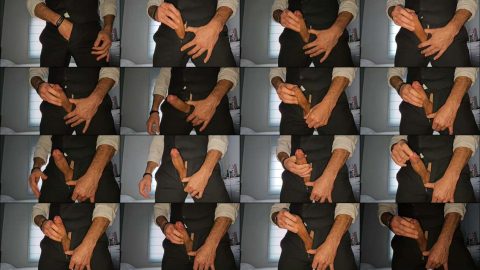 Sexy guy wearing suit moaning, talking dirty until cum hard, strong orgasm