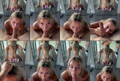 Swallowing his cum while I ride my Dildo in front of the mirror – POV